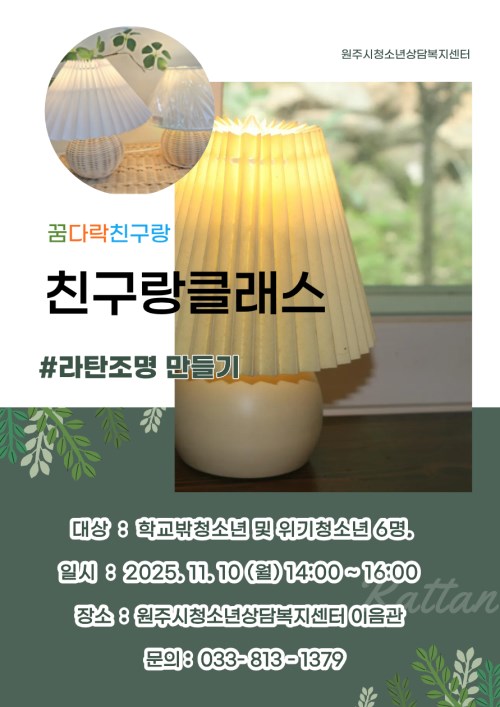 [꿈다락친구랑]''친구랑클래스(라탄)'' 참여자 모집